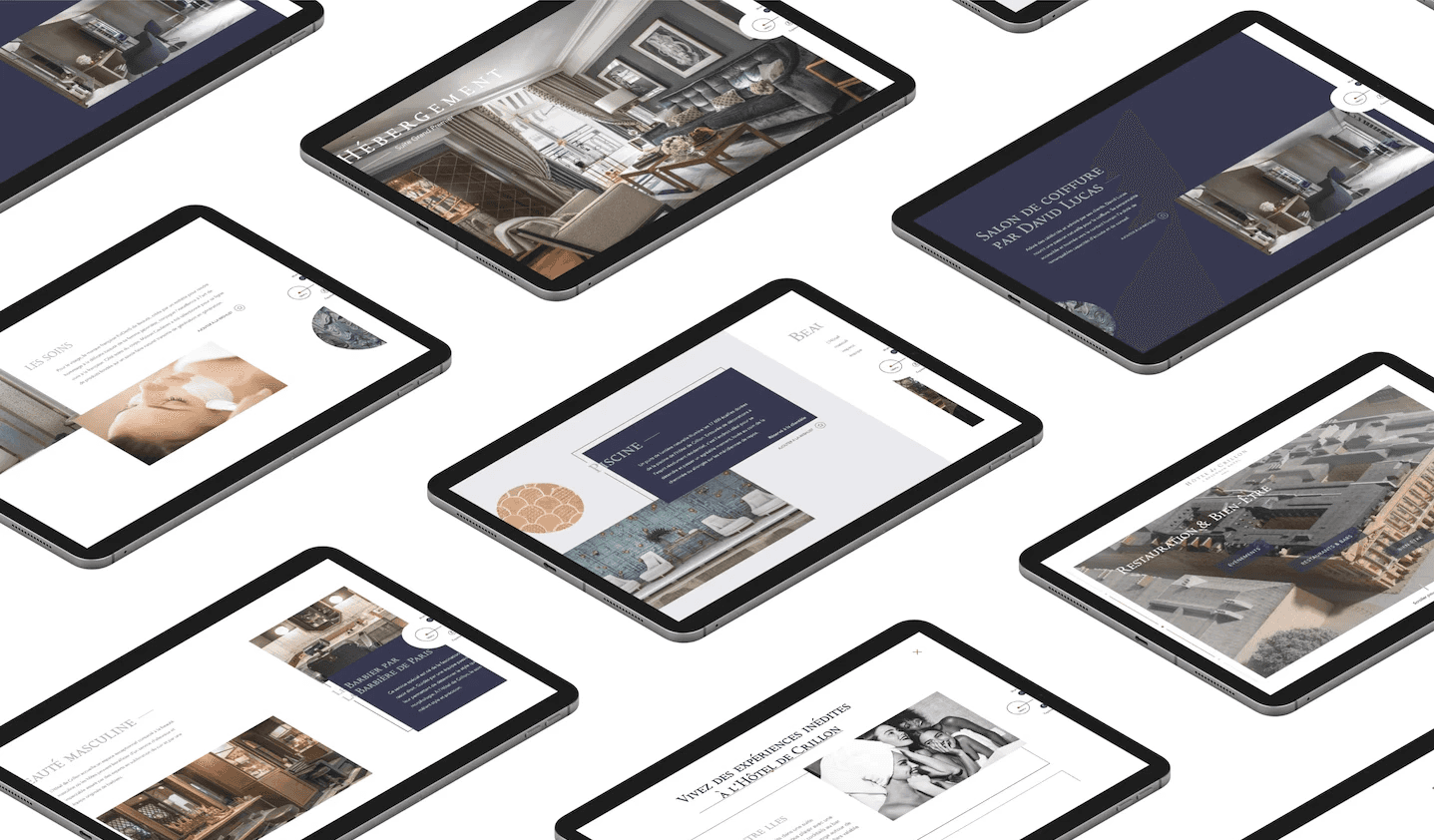 Chaque espace clé (services, chambres, suites signatures) est mis en valeur de manière fluide et narrative, dans un environnement visuel fidèle aux codes de la marque.